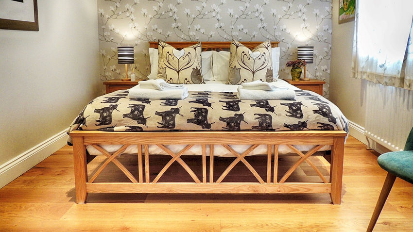 Also situated on the ground floor is the first of three gorgeous bedrooms. Bedroom one looks out onto the private courtyard and is furnished with a king size bed with access to its own en suite shower room. Upstairs are a further two double bedrooms and an additional shower room.